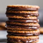 - Optional – Sandwich Cookies: Once cool, spread Nutella or melted chocolate onto the bottom of one cookie and sandwich with another. Melt chocolate by chopping and heating in a double boiler or microwave until smooth. Allow chocolate to set for 20 minutes in the refrigerator or 30 minutes at room temperature.