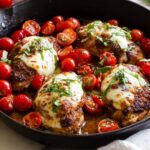 - Add Tomato Mozzarella Topping: Remove the skillet from heat immediately and evenly spread the tomato mozzarella mixture over the chicken.