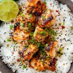 - 1 ½ pounds salmon fillets (skin removed, cut into bite-sized pieces)