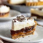 - Assemble the pie: Arrange thick banana slices over the set caramel. Spoon or pipe whipped cream over the bananas. Garnish the cream with grated dark chocolate curls. Serve immediately or keep chilled until serving.