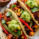 These Black Bean Sweet Potato Tacos are a delicious, hearty, and nutritious meal featuring roasted sweet potatoes, bell peppers, black beans, and a honey cilantro lime sauce. Perfect for a flavorful vegetarian taco night, served with your favorite toppings like guacamole, salsa, and cheese.