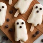 I usually keep the garnish simple because the chocolate chip eyes and mouth are pretty iconic on their own. But sometimes, I sprinkle crushed nuts, colorful Halloween-themed sprinkles, or a tiny drizzle of melted dark chocolate over the yogurt coating for a pretty, festive touch. These little extras add great texture without overpowering the ghostly vibe.