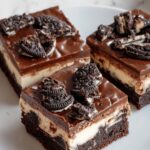 Indulge in rich and creamy Brownie Cheesecake Bars featuring a fudgy brownie base with crushed Oreos, topped with a smooth cheesecake layer and finished with a luscious chocolate ganache and more Oreos. Perfect for dessert lovers looking for an impressive yet easy-to-make treat.