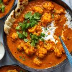 Butter Cauliflower is a flavorful vegetarian dish featuring tender cauliflower florets simmered in a rich, spiced tomato and cream sauce. This Indian-inspired recipe combines aromatic spices like garam masala, turmeric, cumin, and cinnamon, finished with butter and cream for a luscious texture. Served over basmati rice and garnished with fresh cilantro and Greek yogurt, it makes a comforting main course perfect for a cozy dinner.