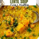 A comforting and nutritious Butternut Squash and Lentil Soup featuring warm spices, creamy coconut milk, and tender vegetables, perfect for a cozy meal.