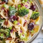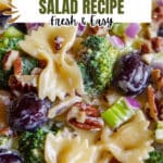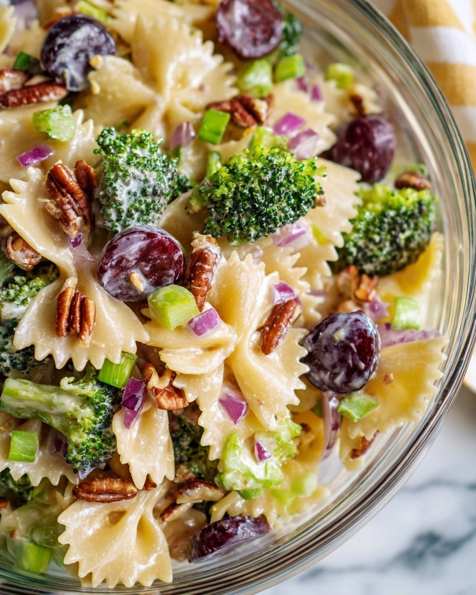 A refreshing and flavorful Calistoga Pasta Salad featuring bow-tie pasta, crisp broccoli, sweet red grapes, crunchy toasted pecans, and smoky bacon, all tossed in a tangy honey-apple cider vinegar mayonnaise dressing. Perfect for picnics, potlucks, and summer gatherings.