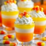 Candy Corn Jello Shots are a festive, colorful party treat inspired by the classic candy corn. These layered gelatin shots combine white, orange, and yellow jello with vodka and whipped cream for a creamy, boozy dessert that’s perfect for Halloween or any celebration. Featuring a white gelatin layer flavored with almond extract, followed by bright orange and yellow layers, topped with whipped cream and candy corn, these fun and easy-to-make shots bring both flavor and visual appeal to your party spread.