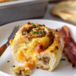 Delicious and hearty breakfast rolls filled with scrambled eggs, breakfast sausage, bacon, cheddar cheese, and cream cheese, all wrapped in flaky crescent dough and baked to golden perfection. Perfect for a satisfying breakfast or brunch.