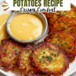 Cheese Crusted Potatoes feature tender Yukon Gold potatoes with a crispy Manchego cheese crust, perfectly seasoned with smoked paprika and served alongside a flavorful roasted garlic aioli. This delicious side dish combines creamy textures with savory, smoky notes for a comforting and indulgent treat.