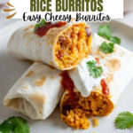 These Cheesy Baked Bean and Rice Burritos are a delicious and easy-to-make meal featuring refried beans seasoned with taco spices, layered with Mexican rice and a blend of sharp cheddar and Monterey jack cheeses, all wrapped in soft flour tortillas and baked to golden perfection.