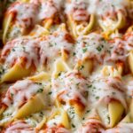 Cheesy Chicken Stuffed Shells are a comforting Italian-American casserole featuring jumbo pasta shells filled with a creamy mixture of ricotta, mozzarella, Parmesan, diced chicken, and herbs. Baked in savory marinara sauce and topped with melted mozzarella, this dish makes a delicious and hearty meal perfect for family dinners or meal prep.