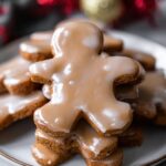 Classic chewy gingerbread man cookies with a rich molasses flavor and warm spices, coated in a smooth vanilla glaze. Perfect for festive occasions and holiday treats.