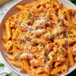 A creamy and flavorful Chicken Parmesan Pasta combining tender chicken, a rich tomato and cream sauce, and parmesan cheese, served with perfectly cooked pasta for a comforting Italian-inspired meal.