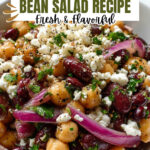 Pour the dressing over the beans and toss gently but thoroughly to coat everything evenly. Then add the thinly sliced red onion, crumbled feta, and fresh parsley. Give the salad one more gentle toss just to combine all those vibrant flavors and textures.