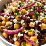 Divorce Salad is a refreshing and flavorful bean salad featuring chickpeas, black beans, tangy red wine vinegar dressing, red onion, and crumbled feta cheese. This easy-to-make salad requires minimal prep and tastes best after a few hours of chilling, making it an ideal dish for meal prep or a light, healthy side.