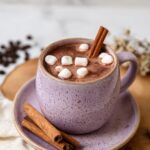 A creamy and naturally sweetened Chocolate Date Latte made with non-dairy milk, cacao, dates, cinnamon, and vanilla. This comforting beverage is perfect served warm, over ice, or mixed with coffee for a delicious treat without refined sugar.