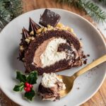 This Chocolate Hazelnut Bûche de Noël is a classic French Yule log cake featuring a light and airy chocolate sponge rolled with rich chocolate hazelnut spread and sweetened whipped cream. Decorated with chocolate shards and toasted hazelnuts, this festive dessert is perfect for holiday celebrations, combining indulgent flavors and a stunning presentation.