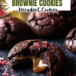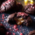 Delight in these decadent Chocolate Hazelnut and Caramel Stuffed Brownie Cookies, elevated with a sprinkle of homemade salted pomegranate sugar. These rich cookies feature a perfect balance of bittersweet and dark chocolate with a gooey hazelnut and caramel center, finished with a tangy, sweet-spiced sugar topping for an irresistible treat.