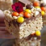 - Reese’s Pieces: Gorgeous garnish that adds color and a burst of peanut buttery candy flavor on top.