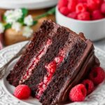 A decadent Chocolate Raspberry Cake featuring moist chocolate layers, tangy raspberry filling, and rich chocolate raspberry frosting, perfect for celebrations or special occasions.