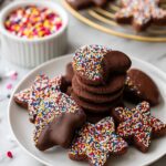Delicious and crisp chocolate shortbread cookies with a rich cocoa flavor, optionally dipped in melted baking chocolate and decorated with sprinkles for a festive touch. Perfectly buttery and tender, these cookies are great for any occasion.