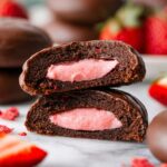 Delight in these rich and indulgent Chocolate Covered Strawberry Cookies, featuring a soft cocoa cookie base filled with a creamy freeze-dried strawberry butter filling, and topped with a smooth chocolate ganache. Perfect for satisfying your sweet tooth with a burst of fruity flavor and chocolate goodness.