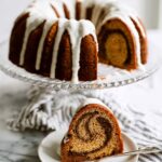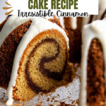 Delicious and moist Cinnamon Bundt Cake with layers of cinnamon sugar and a smooth cream cheese icing, perfect for dessert or a sweet snack.