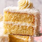 - Decorate with coconut: Gently press 1 to 2 cups sweetened flaked coconut onto the sides and top of the cake. Optionally, pulse coconut in a food processor for shorter strands. Pipe additional decorative frosting around the top and base if desired.