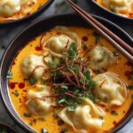 A quick and flavorful coconut curry soup featuring tender vegan dumplings, creamy coconut milk, and a spicy Thai red curry base, perfect for a comforting and easy-to-make meal.