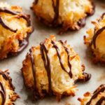 Delicious and chewy Coconut Macaroons made with sweetened shredded coconut and condensed milk, topped with a rich chocolate drizzle. These easy-to-make cookies are perfect for satisfying your sweet tooth and are ready in just 20 minutes.
