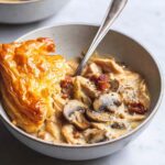 This hearty Chicken and Mushroom Pie features a flaky puff pastry crust filled with a savory mixture of shredded chicken, sautéed mushrooms, crispy bacon, and melted cheddar cheese, all bound together by a creamy homemade chicken sauce. Perfect for a comforting dinner, this pie combines rich flavors and a golden, buttery crust.
