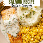 For special occasions, I like plating the salmon on a bed of sautéed spinach and finishing with edible flowers or microgreens. It looks elegant and makes the meal feel even more celebratory. Serving in shallow bowls with the sauce spooned generously over the salmon is a fun way to highlight that creamy lemon goodness.