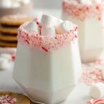 Hosting a gathering? Try serving the hot chocolate in clear mugs to showcase the creamy white color. You can also float a cinnamon stick or a peppermint stick in each cup for guests to stir and add a flavor punch. For extra festivity, rim the mugs with sugar or crushed candy canes—turns an everyday cup into something magical!