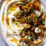 Crispy Oregano Roasted Potatoes with Creamy Feta Sauce is a flavorful and satisfying dish featuring tender roasted baby potatoes infused with fresh oregano and lemon, paired with a tangy and smooth feta cream sauce. The potatoes are roasted to a perfect crispiness and finished with a vibrant herb oil and sesame seeds, making it an irresistible side or main course.