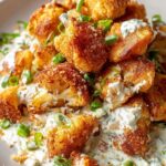 This Crispy Smashed Potato Salad combines tender baby potatoes roasted to golden perfection and topped with a creamy herbed yogurt dressing featuring Greek yogurt, mayonnaise, Dijon mustard, lemon, garlic, and fresh herbs. The potatoes are boiled until just tender, smashed, brushed with olive oil, and oven-roasted until crispy. Garnished with scallions and crunchy potato bits, this dish serves as a delicious warm side salad with a perfect balance of creaminess and texture.