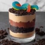 I typically stick with classic gummy worms on top because they’re just so fun and perfect for the “dirt” theme. Occasionally, I like to sprinkle a few mini chocolate chips or add a dusting of crushed nuts for extra texture. Fresh mint leaves also add a pop of color and fresh aroma if you want to elevate the presentation.