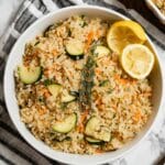 This pilaf is a dream partner for a pan-seared tofu, grilled chicken, or roasted vegetables. For a cozy meal, serve it alongside warm lentil stew or your favorite curry—the herby rice is like a cozy blanket soaking up all those delicious sauces.