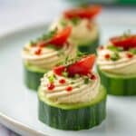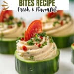 When I’m entertaining, I like arranging the cucumber bites on a large platter with fresh herbs scattered all around and edible flowers for a beautiful touch. Another fun idea is serving them on individual spoons or in mini phyllo cups to elevate the party vibe.