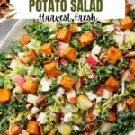 I don’t recommend freezing this salad as the fresh greens and apples don’t hold up well. The roasted sweet potatoes could technically freeze, but I find the texture changes too much. It’s best enjoyed fresh for maximum flavor and crunch.