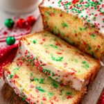 - Glaze and decorate: Spread the icing evenly over the cooled bread using a rubber spatula. Sprinkle additional Christmas sprinkles on top if desired. Allow the glaze to set before slicing and serving.