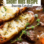 This French Onion Short Ribs recipe combines tender, flavorful beef short ribs with a rich, aromatic broth made from caramelized onions, shallots, garlic, and fresh herbs. Finished with toasted French bread topped with melted Gruyère cheese, this hearty dish is perfect for a comforting dinner.