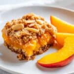 - Perfect Texture Balance: The chewy oatmeal base and crunchy almond crumble topping add delightful contrast to the soft peaches.