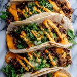 These Garlic Butter Honey BBQ Tacos feature savory ground beef cooked to perfection in a flavorful honey BBQ sauce, topped with a creamy, smoky taco sauce and cheddar cheese, all wrapped in soft tortillas. Perfect for a quick and delicious meal that combines sweet and savory tastes with a hint of smoky spice.