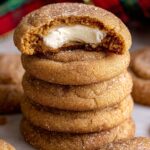 Delight in these Gingerbread Cheesecake Cookies, featuring a spiced gingerbread cookie exterior with a creamy cheesecake center. Perfect for festive occasions or a sweet holiday treat, these cookies blend warm spices with a luscious cream cheese filling, resulting in a unique and indulgent dessert.