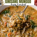 Ginisang Munggo is a comforting Filipino mung bean soup made with sautéed aromatics, tomatoes, and nutritious malunggay leaves, seasoned with vegan broth paste and fish sauce for a rich, savory flavor. This hearty dish is perfect for a warming meal and is fully vegan.