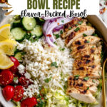 A fresh and flavorful Greek Chicken Bowl featuring marinated chicken breasts cooked to perfection, served over rice or quinoa with crisp veggies, tangy feta, and refreshing homemade tzatziki sauce.
