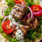 This Greek Chicken Souvlaki recipe features tender, marinated chicken pieces grilled to perfection with traditional Greek seasoning, lemon, garlic, and olive oil. Perfect for a flavorful and healthy meal, the chicken can be cooked on an outdoor grill, stovetop grill pan, air fryer, or oven. Serve with pita bread, tzatziki, or your favorite Greek sides.