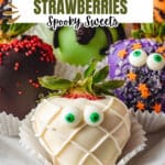 Halloween Chocolate Covered Strawberries are festive and fun treats perfect for the spooky season. This recipe transforms fresh strawberries into adorable Frankenstein, Black Widow Spider, Mummy, and colorful accent designs using Belgian white and dark chocolate, candy colors, pretzels, sprinkles, and candy eyes. A playful and creative dessert ideal for Halloween parties or family gatherings.