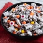 I keep leftover Halloween Puppy Chow stored in a large airtight container at room temperature. It stays crunchy and delicious for up to 5 days—though honestly, it barely lasts that long! Avoid humidity to keep the powdered sugar coating from getting sticky.