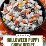For a full Halloween-themed spread, I like serving this Puppy Chow alongside caramel apples, popcorn balls, or a batch of pumpkin spice cookies. It balances the sweeter and crunchier treats perfectly and keeps the party snacks varied and exciting.